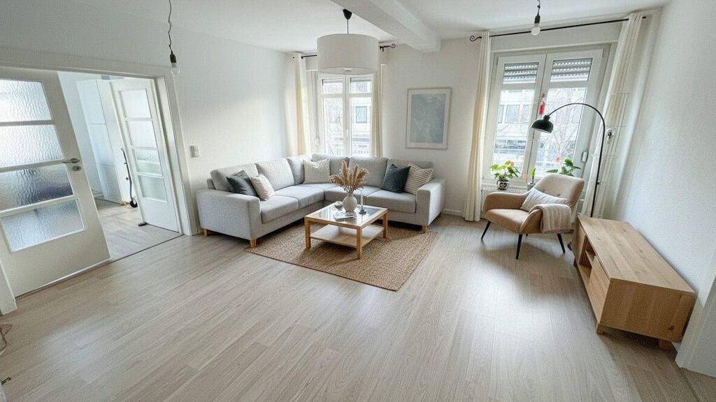 Das Tageslichtbad ist mit einer Badewanne ausgestattet und durch den natürlichen Lichteinfall besonders einladend. Die Doppelverglasung der Fenster gewährleistet Energieeffizienz sowie eine zuverlässige Geräuschdämmung. Die Etagenheizung sorgt für wohlige Wärme; die Ausstattung ist funktional, sodass individuelle Modernisierungen problemlos möglich sind.