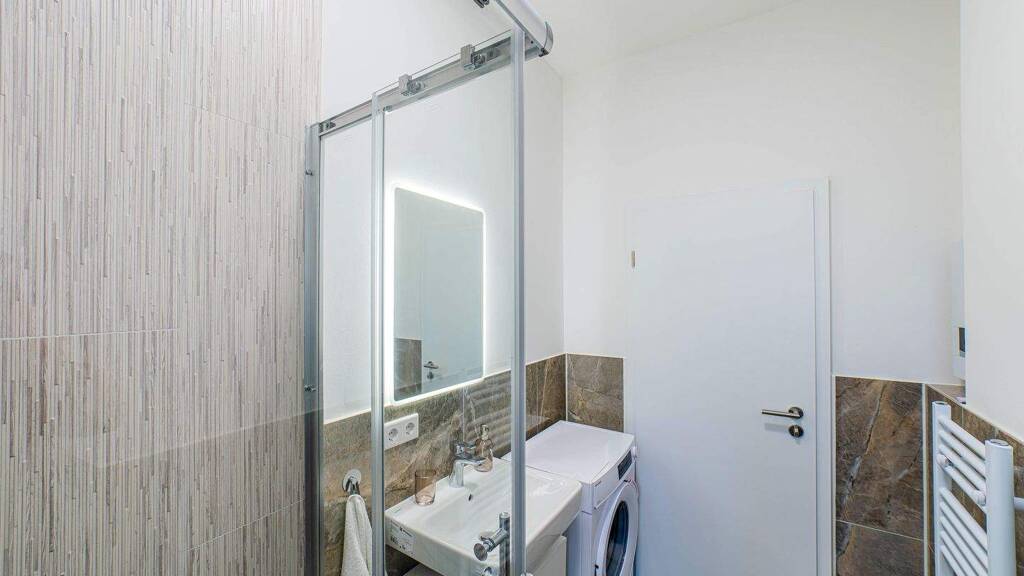 - Badezimmer: Bad mit Dusche, Bad mit Fenster
