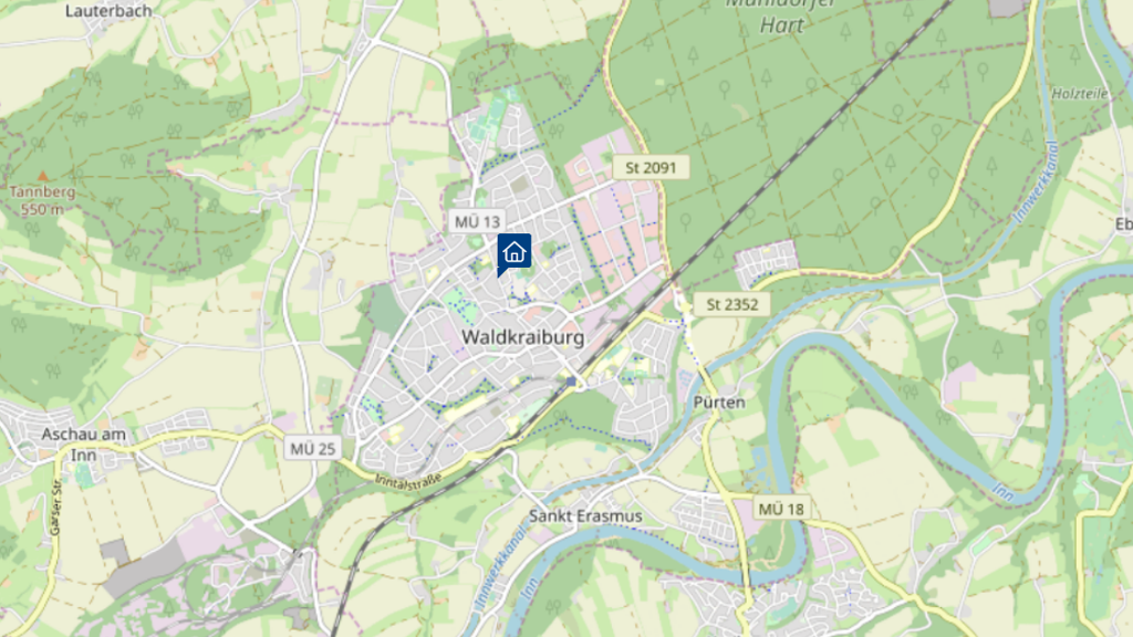 Die Wohnung befindet sich in zentraler Lage von Waldkraiburg. Einkaufsmöglichkeiten, Ärzte, Apotheken, Schulen sowie öffentliche Verkehrsmittel sind bequem und schnell erreichbar. Die gute Infrastruktur kombiniert urbanes Wohnen mit kurzen Wegen und hoher Lebensqualität.