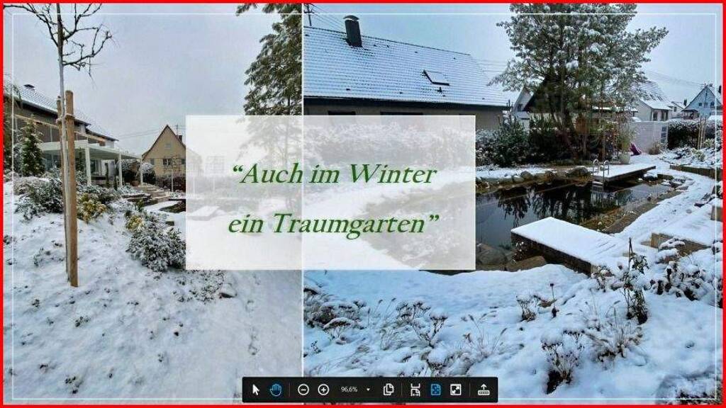 große Südterrasse ca. 30 qm mit Jurasteinplatten, kubistische weiße Terrassenüberdachung von Weinor, 6 m Markise und Lichtelemente, verharzte Kieswege neben der Terrasse, Naturschwimmteich, mit natürlicher Reinigung über separate Pflanzenzonen, Skimmer für Oberflächenabsaugung,