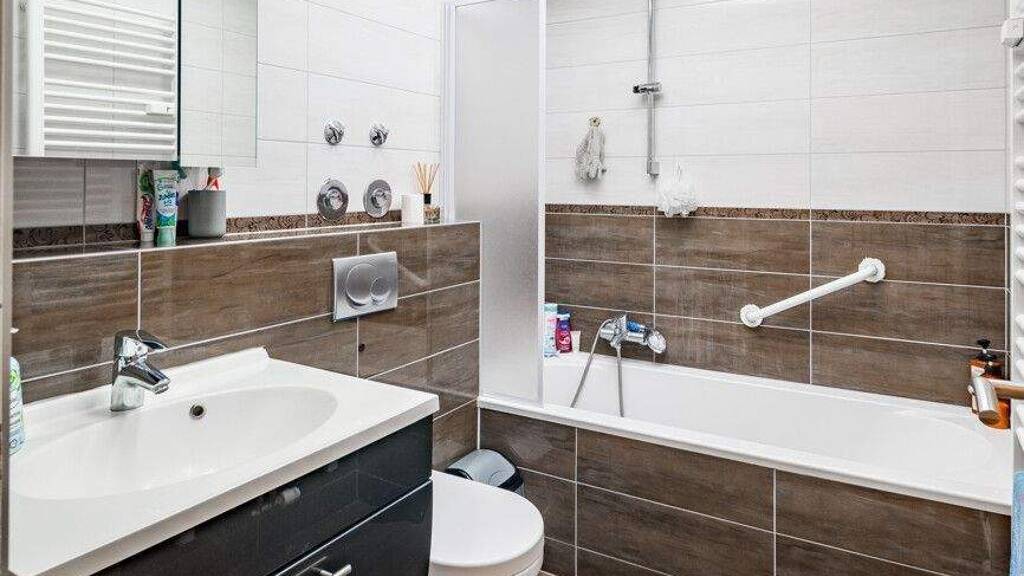 Das Badezimmer wurde mit viel Liebe zum Detail gestaltet. Es verfügt über eine Duschwanne, ein WC, ein Waschbecken mit Unterschrank, einen Spiegelschrank sowie einen Handtuchheizkörper. Besonders hervorzuheben ist die aufwendig gestaltete Decke mit flächenbündig integrierten Lichtelementen, deren nahezu vollflächige, indirekte Beleuchtung dem Raum eine außergewöhnlich helle, ruhige und sehr angenehme Atmosphäre verleiht.