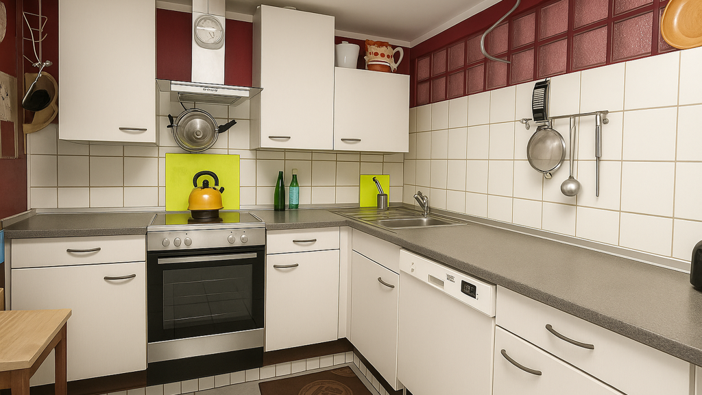 - Bodenbelag: Fliesen, Holzdielen, Laminat, Teppich