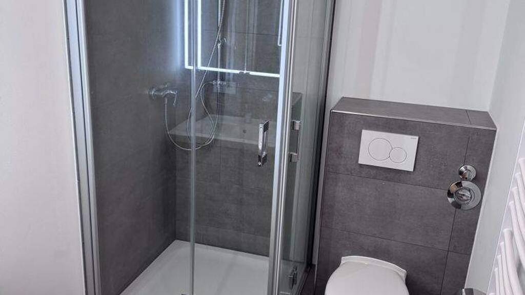 - Badezimmer: Bad mit Dusche, Bad mit Fenster