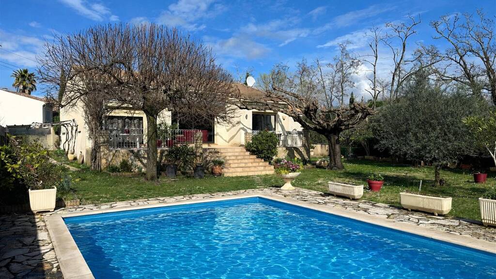 Bundesweit: 3 km vom Zentrum Uzès entfernt, ein 100 m² großes Haus in sehr gutem Zustand mit schönen Ausstattungen. Es verfügt über 3 Schlafzimmer. Das 1000 m² große, eingezäunte und bewaldete Grundstück bietet einen Pool, eine Sommerküche, 2 Garagen, ein Abstellhäuschen und einen Stellplatz für einen Wohnwagen. Ruhige Umgebung, keinerlei Belästigungen.
