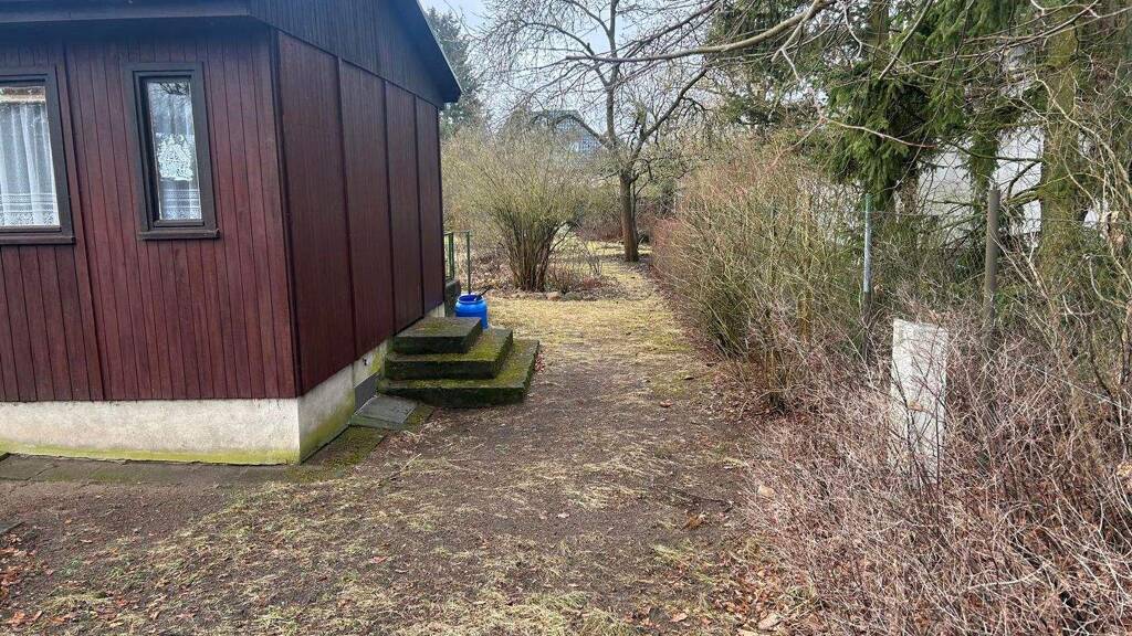 Das ideal gechnittene GrundstĂĽck ( ca. 20 m x ca. 41 m ), ist im Moment mit einer teilunterkellerten Gartenlaube bebaut.