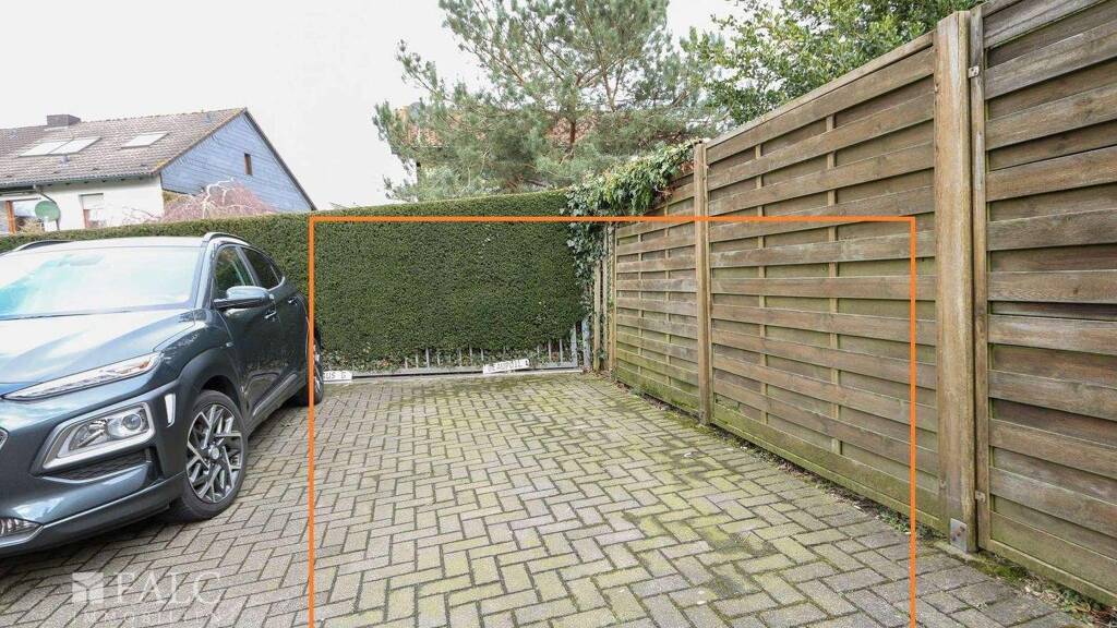 Der gut anfahrbare, eigene Stellplatz liegt hinter dem Haus.