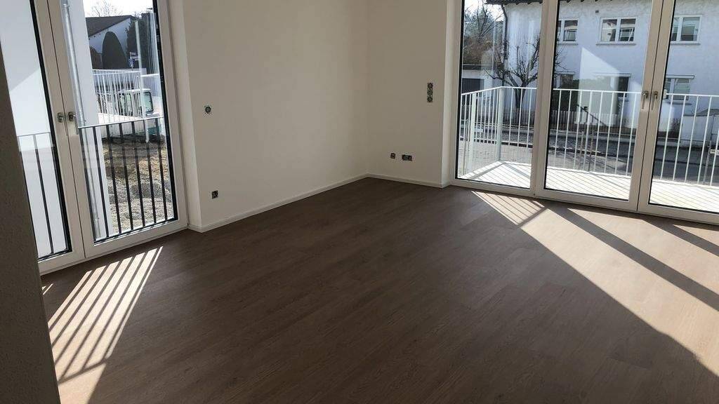 Süd -Balkon, Bad mit Fenster. Die Ausstattung ist insgesamt absolut hochwertig: Vinylböden, Fußbodenheizung, großformatiges Feinsteinzeug, Dreifach- Fensterverglasung, Sanitärausstattung von namhaften Marken- Herstellern, Rolläden Videogegensprechanlage... Zur Wohnung gehören 1 TG-Stellplatz(kein Duplex), sowie ein Abstellraum im Keller.