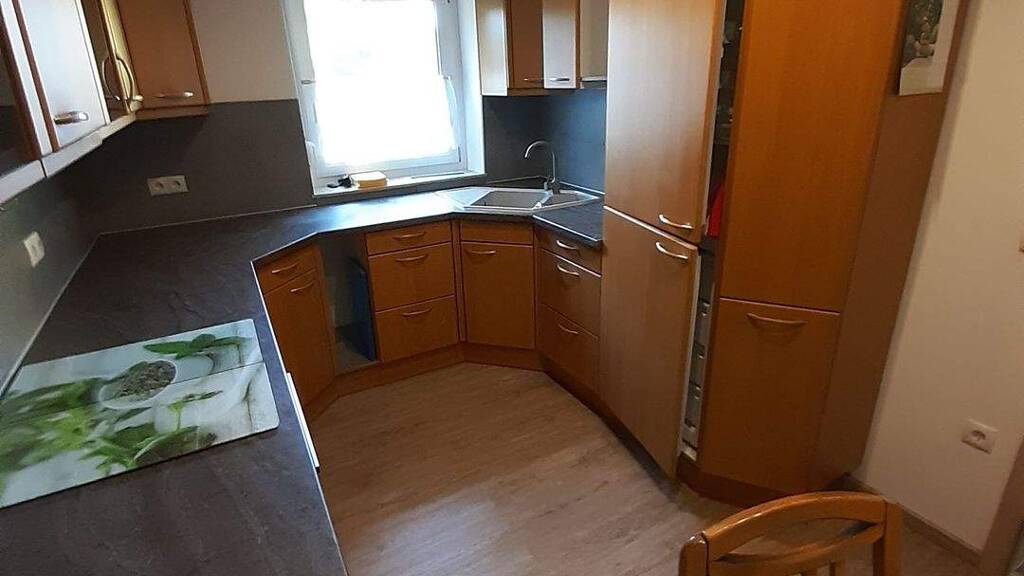 Die Wohnung liegt im Erdgeschoss eines 4-Familienhauses in ruhiger Lage in einem Vorort von Amberg. Zur Wohnung gehören neben einer komplett eingerichteten Einbauküche in einer Wohnküche zwei modern eingerichtete Bäder mit Fenster und eine sehr große Terrasse, die teilweise überdacht ist. Sie befindet sich in einem nicht einsehbaren Innenhof. An die Terrasse schließt sich auf einer Seite die Garage an, auf der anderen Seite befindet sich ein Nebengebäude, in dem eine Werkstatt untergebracht werden könnte. Die Wohnung ist komplett unterkellert, hier befindet sich auch die Waschküche. Der Keller ist auch über eine Außentreppe von der Terrasse aus zu erreichen. Alle Fenster verfügen über Rollos und Mückengitter.