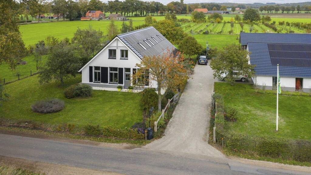 this magnificent farmhouse took on its current form in 2016, when the farm, which was built in 1924, was completely renovated. the emphasis was on sustainability: the exterior was fully insulated with polystyrene blocks, the house was fitted with new hr+++ glass all around, a water-water heat pump was installed (which exchanges and extracts heat at a depth of 75 metres), the interior floor was fitted with a robust cast floor - ideal in combination with underfloor heating - and a total of 110 (no, this is not a typo) solar panels were installed on the roofs. under the bonnet, this house is all state-of-the-art technical ingenuity. even the colour palette - the exterior is whitewashed with grey woodwork and beaded edging - contributes to the energy-efficient character of the house, because while the white facades reflect sunlight, the grey absorbs heat. not only does this house have zero energy consumption, it also generates a considerable amount of energy! a home battery is therefore an excellent addition here.