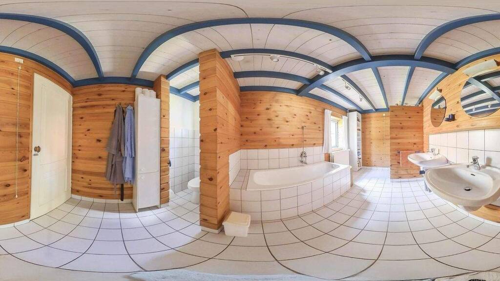 upon entering the entrance hall, you will immediately notice the tiled floor with underfloor heating in combination with the sleek plastered walls and plastered ceiling. the beautiful view of the first floor through the loft and staircase to the upper floor is particularly striking. in the hall, you will also find the meter cupboard with a completely renovated interior, equipped with an extensive group layout and three-phase power. the hall also contains a fully tiled toilet with wall-mounted toilet, washbasin, urinal, and mechanical ventilation.