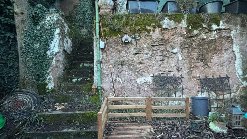 Das Gebäude ist am Felsen gebaut. Auf der Rückseite befindet sich ein Garten in Hanglage, der den Bewohnern des 1. und 2. Obergeschosses zur Verfügung steht.