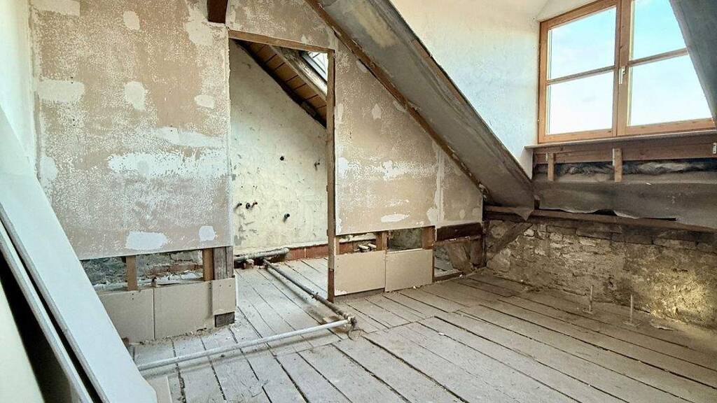 Zwei nach Süden ausgerichtete Balkone eröffnen Ihnen eine herrliche Weitsicht und laden zum Verweilen und Entspannen ein. Der Dachgeschossbereich wurde in den 1990er-Jahren ausgebaut und bis 2020 als Wohngemeinschaft vermietet. Die vorhandenen Wände wurden brandschutztechnisch optimiert, und im Jahr 2023 wurden im Rahmen der geplanten Sanierung Boden, Decken sowie die Heizungsverrohrung vollständig zurückgebaut. Somit präsentiert sich das Objekt im Rohbauzustand, was Ihnen die Möglichkeit gibt, Ihre individuellen Vorstellungen und Wünsche zu verwirklichen.