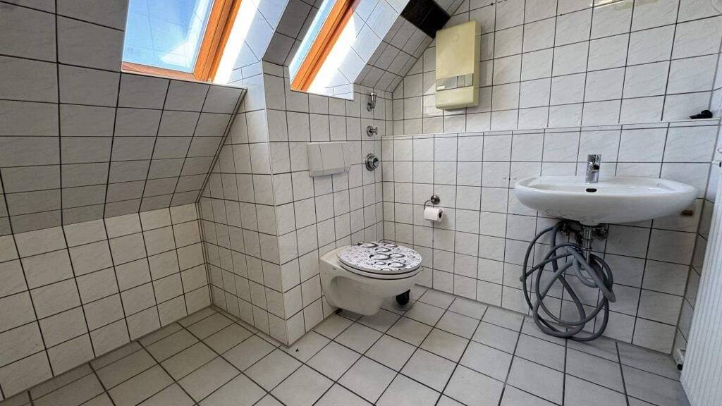 Die Wohnung besticht durch ihre besonderen Details: Große Veluxfenster durchfluten die Räume mit Tageslicht, während die leichte Dachschräge eine behagliche Wohnatmosphäre schafft. Der durchdachte Grundriss ermöglicht eine optimale Raumnutzung - alle Zimmer sind direkt von der zentralen Diele aus begehbar. Das großzügige Wohnzimmer bietet viel Platz zum Entspannen, während das gemütliche Schlafzimmer und ein weiteres Zimmer, das sich ideal als Kinder-, Gäste- oder Arbeitszimmer eignet, zusätzlichen Komfort bieten. Eine quadratische zweite Diele schafft darüber hinaus die Möglichkeit für eine praktische Computerecke oder einen kleinen Arbeitsbereich.