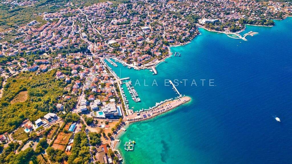 Immobilienangebot auf der Insel Krk, Malinska - ein modernes Doppelhaus in bester Lage, nur 700 m vom Meer und dem Ortszentrum entfernt. Das Haus bietet 122,81 m² Wohnfläche, verteilt auf Erdgeschoss und Obergeschoss, die durch eine Innentreppe verbunden sind. Im Erdgeschoss befinden sich Eingangsbereich, Gäste-WC, Speisekammer, Wohnküche und Wohnzimmer mit Zugang zu einer überdachten Terrasse und dem Garten. Im Obergeschoss befinden sich Flur, Badezimmer und drei Schlafzimmer, eines davon mit eigenem Bad und Zugang zu einem überdachten Balkon mit herrlichem Meerblick. Der 110 m² große, umzäunte Garten bietet viel Privatsphäre. Zwei Parkplätze mit Ladestation für Elektrofahrzeuge runden das Angebot ab. Für den Bau werden ausschließlich hochwertige Materialien und Ausstattungen verwendet, darunter erstklassige Keramikfliesen und Parkettböden in den Schlafzimmern, hochwertige Sanitäreinrichtungen, Klimaanlagen in allen Räumen, Fußbodenheizung in Bädern, Flur und Wohnzimmer, hochwertige PVC-Außenfenster und -türen mit Moskitonetzen und elektrischen Rollläden, Sicherheitstüren sowie die Vorbereitung für Solaranlagen, Alarmanlage und Videoüberwachung. Die Immobilie befindet sich derzeit im Bau und soll voraussichtlich Ende 2026 fertiggestellt werden.
