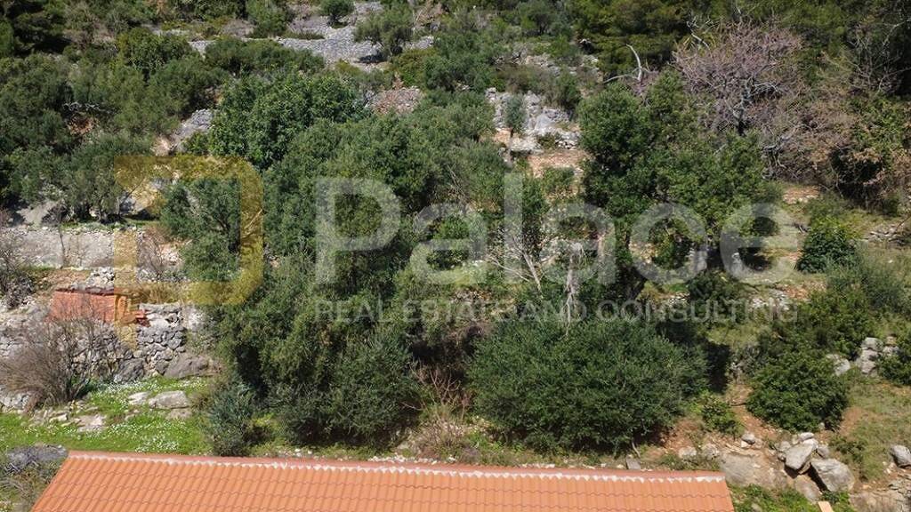 Das Gebäude befindet sich auf ca. 7.000 m Land, das sich in Form eines länglichen rechteckigen Grundstücks hinter der Scheune zum Gipfel des Hügels erstreckt, etwa 15 Meter breit. Direkt hinter dem Haus befinden sich 2-3 zugängliche Terrassen (Anlegestellen), während der Rest des Grundstücks weiter bergauf führt.