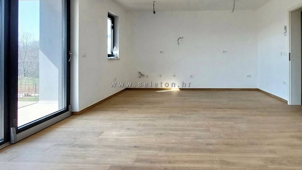 In einem neuen, modernen Gebäude steht eine Wohnung im ersten Stock des Gebäudes zum Verkauf, die Wohnung hat Fläche von 64 m², besteht aus Wohnzimmer, Küche, überdachten Terrasse, Flur, 2 Schlafzimmer und Badezimmer. Die Wohnung ist nach Süden ausgerichtet, was viel Tageslicht garantiert, sie verfügt über eine Klimaanlage, eine einbruchsichere Eingangstür, Fußbodenheizung im Wohnzimmer und Bad sowie zwei Parkplätze vor dem Gebäude. Die Wohnung liegt ca. 9 km von Porec und ca. 10 km vom Meer entfernt.