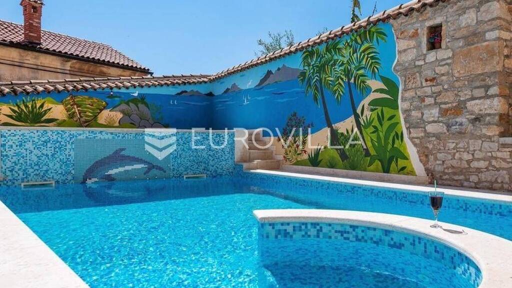 U srcu grada Vodnjana nalazi se ova predivna vila koja je nekada bila stara istarska kuca, a danas je pretvorena u moderno utociste. S prostorom od 537 m2 i dvoristem od 400 m2, ova vila proteze se kroz prizemlje, prvi i drugi kat. Prizemlje nudi udobnu konobu s velikim stolom za rucavanje i otvorenim kaminom, dok se na drugoj strani nalazi prostrani stan s kuhinjom, blagovaonicom, dnevnim boravkom, dvije spavace sobe i kupaonicom. Prvi kat kuce sadrzi tri apartmana, svaki opremljen kuhinjom, dnevnim boravkom, spavacom sobom, kupaonicom i terasom. Na visokom potkrovlju smjesten je drugi kat s kuhinjom, blagovaonicom, dnevnim boravkom, tri spavace sobe, kupaonicom i prostranom terasom koja pruza prekrasan pogled na Brijune. Kuca takoder ima dva odvojena toaleta. U dvoristu se nalazi bazen s suncalistem te uredena okucnica s bunarom. U sklopu kuce nalazi se takoder vinski podrum. Unatoc modernim dodacima, svi tradicionalni elementi istarske gradnje su sacuvani. Kuca je temeljito renovirana 2014. godine s naglaskom na kvalitetu i udobnost. Postavljena je prva faza centralnog grijanja kroz cijeli objekt, a na drugom katu se nalazi i kaljava pec, dok pet klima uredaja osigurava ugodnu temperaturu tijekom cijele godine. Takoder, vazno je napomenuti da su na krovu postavljeni solarni paneli koji sluze za grijanje i zagrijavanje vode. Kuca je opremljena visokokvalitetnim namjestajem i ima tri ulaza. Za vise informacija kao i dogovora oko razgledavanja Vam stojimo na raspolaganju. ... Vise na eurovilla.hr, ID: 663752