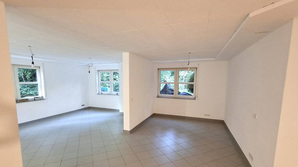 Zusätzlich befinden sich im UG zum weiteren Ausbau als ELW oder Bürotrakt vorbereitete Wohnräume mit einer Wohnfläche von ca. 54 qm, ausgestattet mit Fußbodenheizung, Südfenstern und separatem Zugang, ferner der Heizungskeller, ein großer Wasch- / Hobbyraum sowie ein Weinkeller aus Naturziegeln.