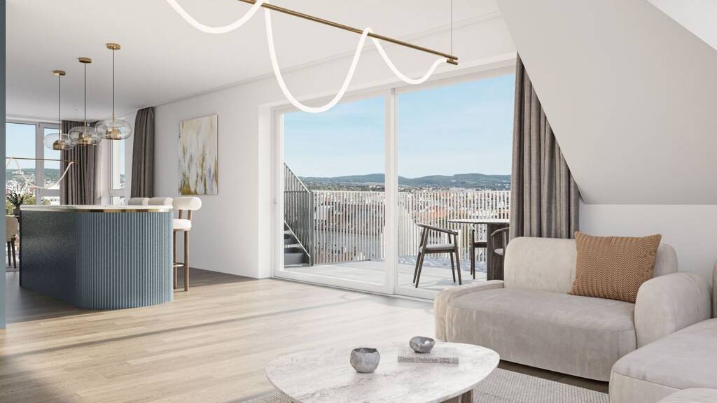 In einer verkehrsberuhigten Sackgasse und direkt am Arik-Brauer-Park gelegen entstehen 150 hochwertige Eigentumswohnungen mit Wohnflächen von ca. 30 m² bis 130 m², die für unterschiedlichste Lebensbedürfnisse und Wohnkonzepte ausgelegt sind. Die Wohnungen bieten attraktive Extras wie private Gärten, Balkone, Loggien und eine beeindruckende Panorama-Terrasse, die einen atemberaubenden 360° Panoramablick über Wien eröffnet. Mit großzügigen Raumhöhen schaffen wir ein offenes und luftiges Wohngefühl. Darüber hinaus stehen Tiefgaragenstellplätze zur Verfügung und moderne Energiekonzepte, wie Photovoltaik und Fernwärme, garantieren eine nachhaltige und effiziente Energieversorgung. Hier wohnen Sie stilvoll, zukunftsorientiert und überaus komfortabel.