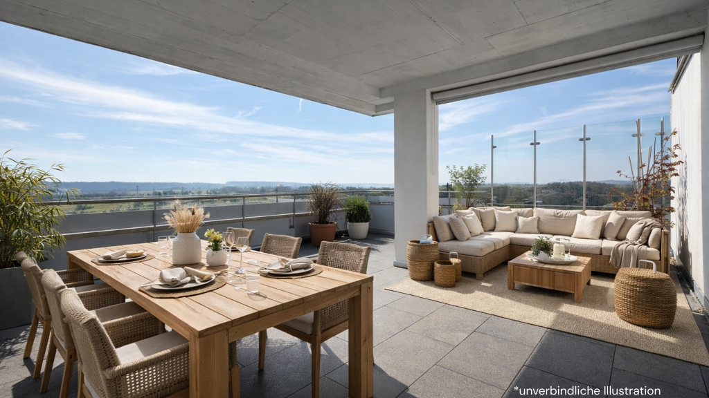 Verbringen Sie sonnige Stunden auf Ihrer uneinsehbaren Dachterrasse