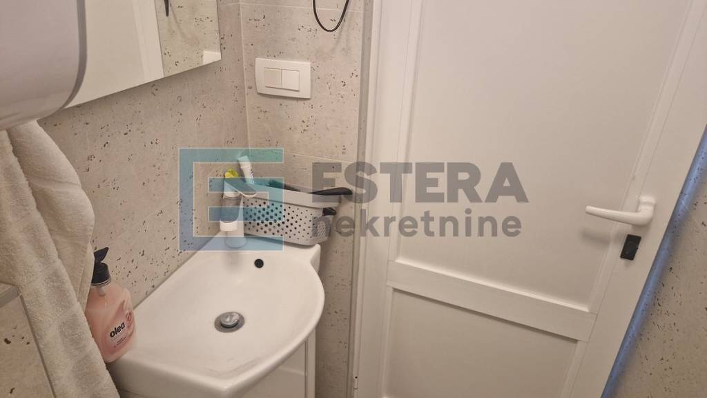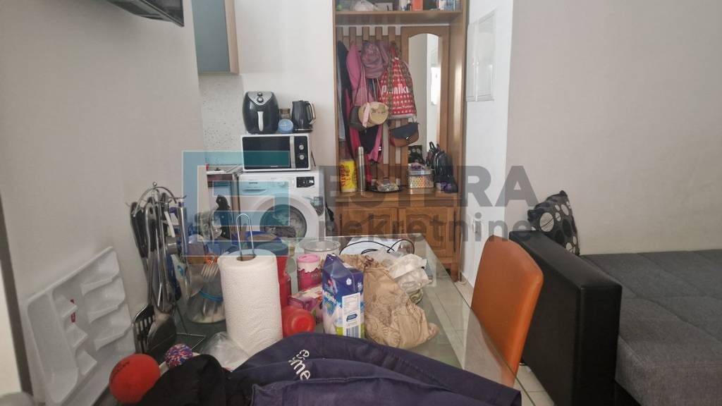 Nalazi se u prizemlju zgrade koji ima zajednicki ulaz, a sastoji se od jedne sobe i kupaonice. Trenutno je namjesten s dva trosjeda na razvlacenje, ormarom, blok kuhinjom, ves masinom, klima uredajem i internetom. Visina prostora je 3,70m.