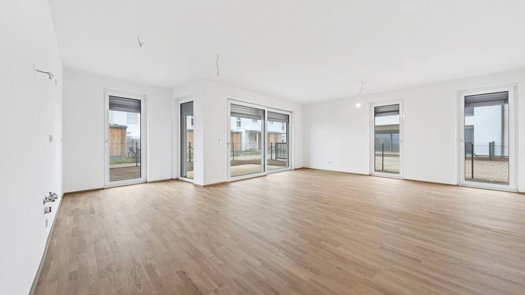 Fahrradabstellplätze, Kinderwagenraum, Spielplatz mit Pergola und Sitzmöglichkeiten sowie eine Tiefgarage vervollständigen das Angebot des durchdachten, modernen und nachhaltigen Projekts. Ein Tiefgaragenplatz ist zu erwerben (ab € 17.500,-).