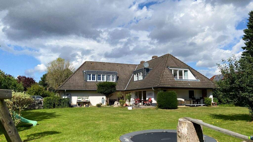 Das hier von uns im Rahmen eines qualifizierten Makler-Alleinauftrages angebotene, große Eigenland-Grundstück ist mit einem villenähnlichen Winkelbungalow nebst in das Haus integrierter Garage bebaut. Das Haus wurde in hochwertiger, massiver Bauweise erstellt und ist teilunterkellert. Auf dem riesigen grundstück stehen, falls gewünscht, 2 weitere Bauplätze à 800 m² für Wohnhäuser mit separater Zuwegung zur Verfügung. Eine positiv beschiedene Bauvoranfrage liegt vor. Das Haus verfügt über 8 Wohn- und Schlafräume sowie 2 Bäder und 2 Küchen, da es im DG eine interne Einliegerwohnung hat. Es gibt weiterhin 2 teilüberdachte Terrassen, eine Galerie, eine Südloggia und beidseitige Gauben. Die Aufteilung ist großzügig und die Räume gut belichtet. Von 2016 bis 2020 erfolgten einige Modernisierungen. Diese große Haus bietet vielfältige Nutzungsmöglichkeiten, z.B. für eine große Familie oder 2 Generationen oder die Kombination Wohn + Arbeiten für Freiberufler.