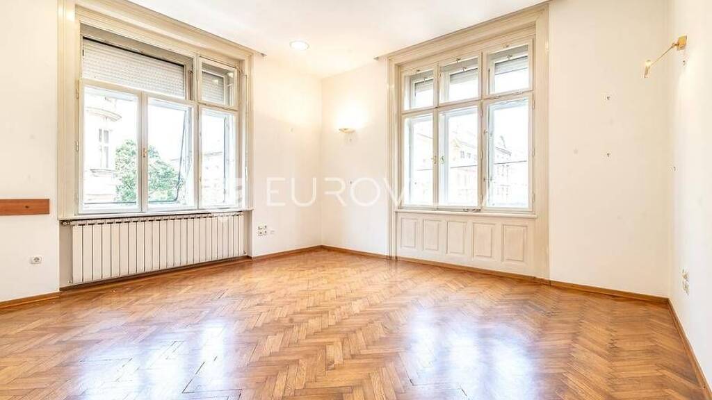 Zagreb, centar, prostrani gradanski stan velicine 121,20 m2, u naravi 140 m2, na prvom katu stambeno-poslovne zgrade. Sastoji se od predvorja, cetiri prostrana salona, kuhinje okrenute prema dvorisnoj strani s balkonom, dva toaleta, kupaonice i ostave. Pripada mu uredeni prostor na tavanu velicine cca 15 m2.Prostor se nalazi na odlicnoj lokaciji u centru grada, u blizini javnih garaza i parkinga, u vrlo odrzavanoj zgradi s liftom.Stan idealan za zivot ili kao poslovni prostor.Ostale informacije na upit.... Vise na eurovilla.hr, ID: 436444