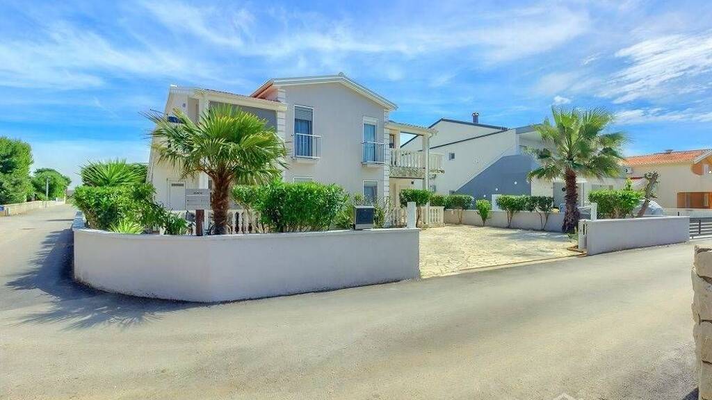 Apartmanska kuca s 4 stambene jedinice. Svaka stambena jedinica sastoji se od lijepe natkrivene terase, kuhinje s dnevnim boravkom, kupaona i dvije spavace sobe. Svi apartmeni su kompletno opremljeni, trenutno su registrirani u svrhu turizma s vrlo dobrom popunjenosti.