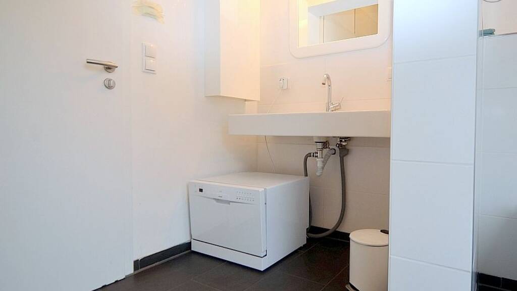 Die Wohnküche ist mit allen Utensilien des täglichen Bedarfs ausgestattet wie Cerankochfeld mit Dunstabzug, Backofen, Kühlschrank, Mikrowelle, Kochutensilien, Kaffeemaschine, Wasserkocher etc. Ein Esstisch mit 2 Stühlen und Sitzbank ist ebenso vorhanden. Ein Geschirrspüler ist vorhanden.