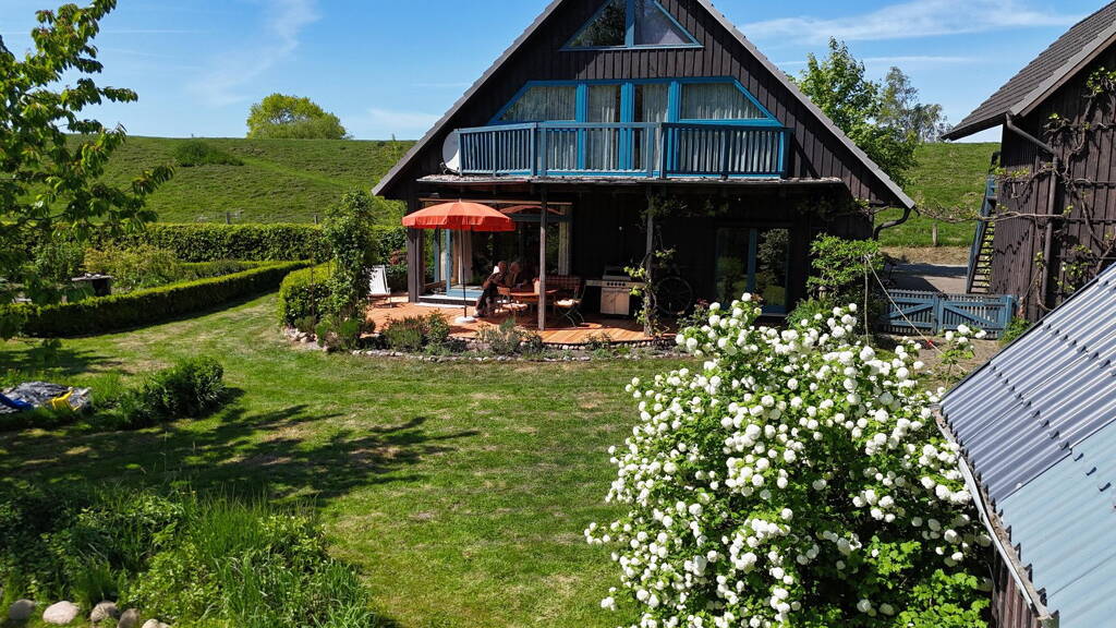 Ökologisch gebautes Holzhaus mit großem Nebengebäude
