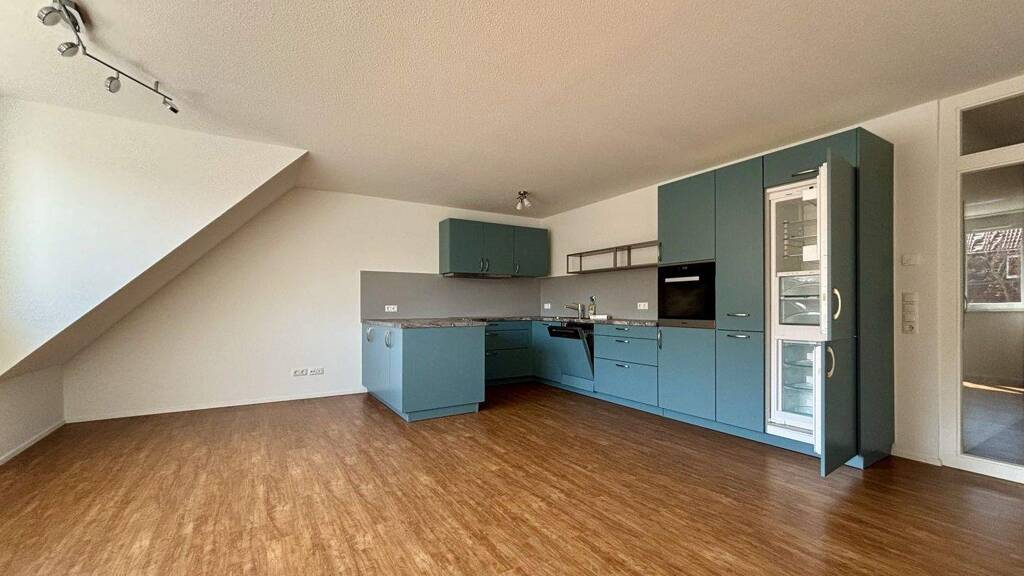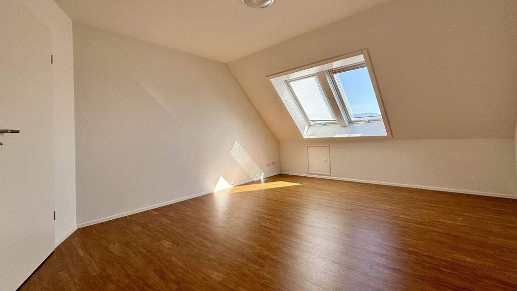 Die Wohnung verfügt über 3 Zimmer und 2 Bäder auf zwei Ebenen. Das Dachgeschoss mit Schlafzimmer und Bad kann prima auch als extra Eltern- oder Kinderbereich genutzt werden.
