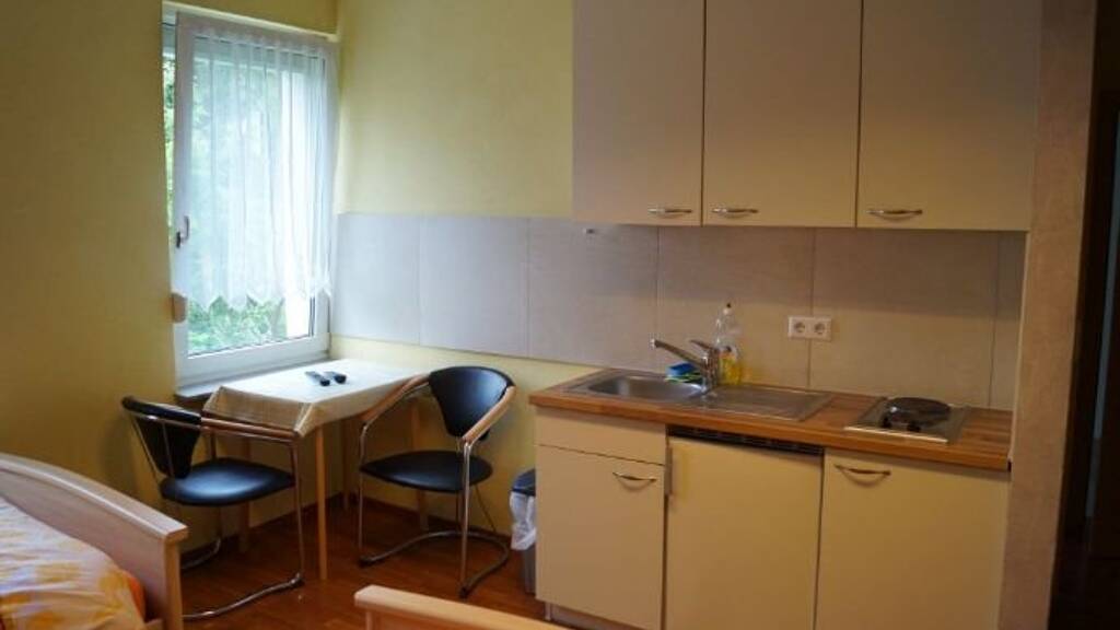 1-Zimmer-Apartment in Stuttgart-Ost, EG, 2-3 Einzelbetten, TV, Miniküche, Bad mit Dusche und WC, WLAN gegen Gebühr; MWSt. wird ausgewiesen