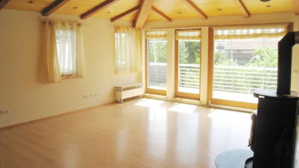 Der gesamte Wohnbereich ist mit einem Ahorn-Echtholz-Parkettboden ausgelegt. Zusätzlich zu den zentral gespeisten Heizkörpern sorgt ein Schwedenofen im Wohnareal für eine besonders behagliche Wärme. Die großen Fensterfronten entlang der Westseite des Wohn- und Küchenbereiches beeindrucken mit dem Ausblick über die Dächer der Vilsbiburger Innenstadt. Selbstverständlich verfügen alle Fenster über eine außenseitig, elektrisch betriebene Beschattung. Weiterhin sind die Fenster im Obergeschoss mit farblich abgestimmten Vorhängen versehen.