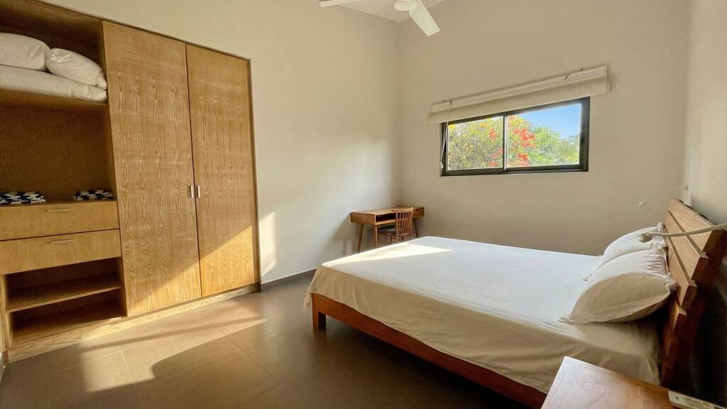 Der offene Wohn- und Essbereich bildet das Herzstück des Hauses und schafft eine einladende Umgebung für den Alltag und die Unterhaltung. Die Küche ist modern und funktional, ergänzt durch einen separaten Lagerraum und einen separaten Waschraum. Die Schlafzimmer sind hell und durchdacht gestaltet. Die Master Suite verfügt über einen begehbaren Ankleidebereich und ein eigenes Bad, was einen privaten Rückzugsort im Haus bietet. Alle Schlafzimmer sowie der Hauptwohnbereich sind klimatisiert.