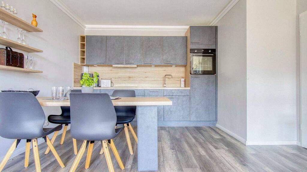 Zu den attraktiven Ausstattungsmerkmalen zählen unter anderem eine moderne Einbauküche, pflegeleichter Laminatboden sowie viele weitere wohnliche Details. Der Balkon lädt zum Entspannen im Freien ein und erweitert den Wohnkomfort zusätzlich.