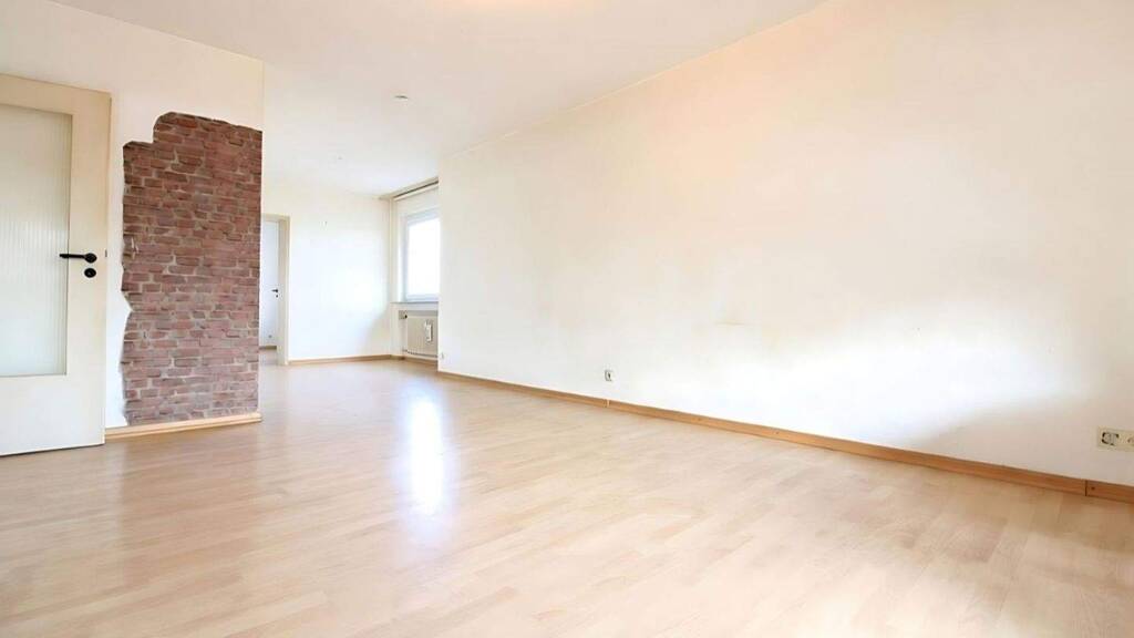 Ergänzt wird das Raumangebot durch ein Badezimmer mit Dusche sowie ein separates Gäste-WC. Die Wohnung befindet sich in einem altersbedingt renovierungsbedürftigen Zustand und bietet somit viel Potenzial zur individuellen Gestaltung nach eigenen Vorstellungen. Eine vorhandene Einbauküche gehört zur Ausstattung.