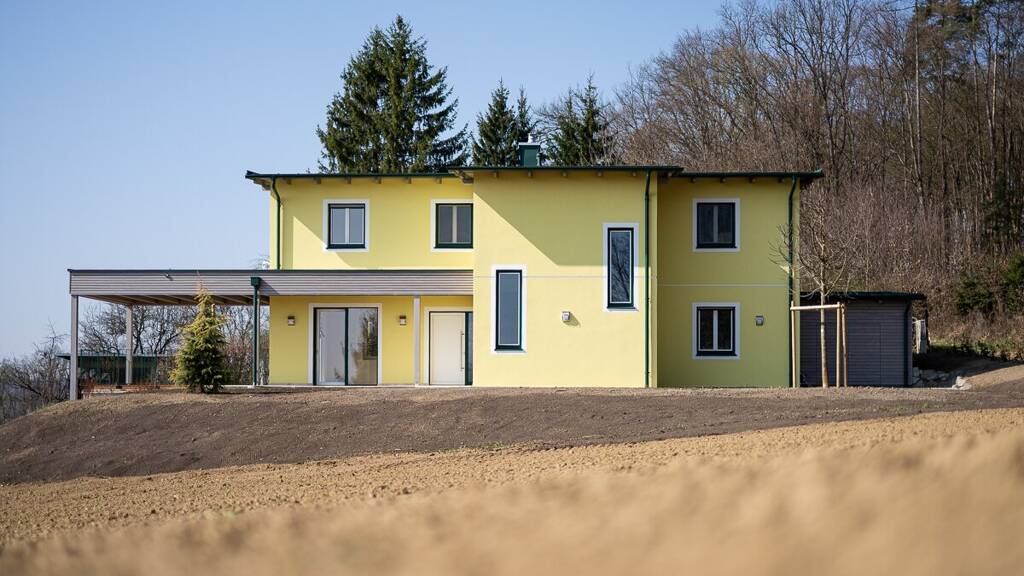 Ihren Anspruch auf eine gehobene Wohnsituation wird dieses Einfamilienhaus ( fertig gestellt März 2026 ) mit einer Gesamtnutzfläche von ca. 278 m2 in jeder Hinsicht folge leisten. Das zweigeschossige, in Ziegel Massivbauweise errichtete Gebäude erfüllt beste Qualitätsstandards und ist auf höchstem Level ausgestattet. Mit viel Feingefühl wurden die hochwertigen Materialen für den ca. 181 m2 großen Wohnbereich selektiert, eine moderne Einbauküche inkl. stilvollem Tischherd ist bereits vorhanden, ebenso wie die voll ausgestatteten Bäder und WC`s - einzig die individuelle Einrichtung der Räumlichkeiten ist noch von den neuen Eigentümern zu gestalten. In beiden Etagen wurde eine vollflächige Fussbodenheizung installiert welche mittels kostengünstiger Erdwärme betrieben wird, ebenso sind Vorkehrungen für die Installation einer Photovoltaik Anlage getroffen worden.