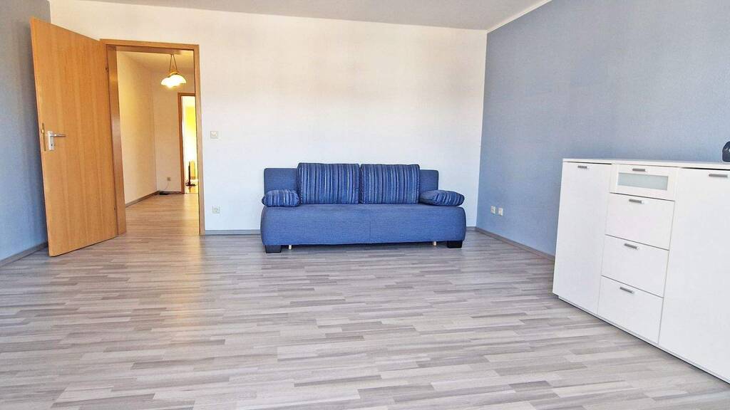 Das Bad mit Fenster verfügt über eine eingebaute Badewanne und helle Wandfliesen, sowie einen Waschmaschinenanschluss. Die vorhandene Einbauküche ist mit einem Kühlschrank, Herd und Spüle ausgestattet. Die Schlaf- und das Wohnzimmer sind mit einem Laminatbodenbelag versehen. Die Wohnung ist leerstehend und nicht vermietet und wird inklusive der vorhandenen Einrichtung verkauft.