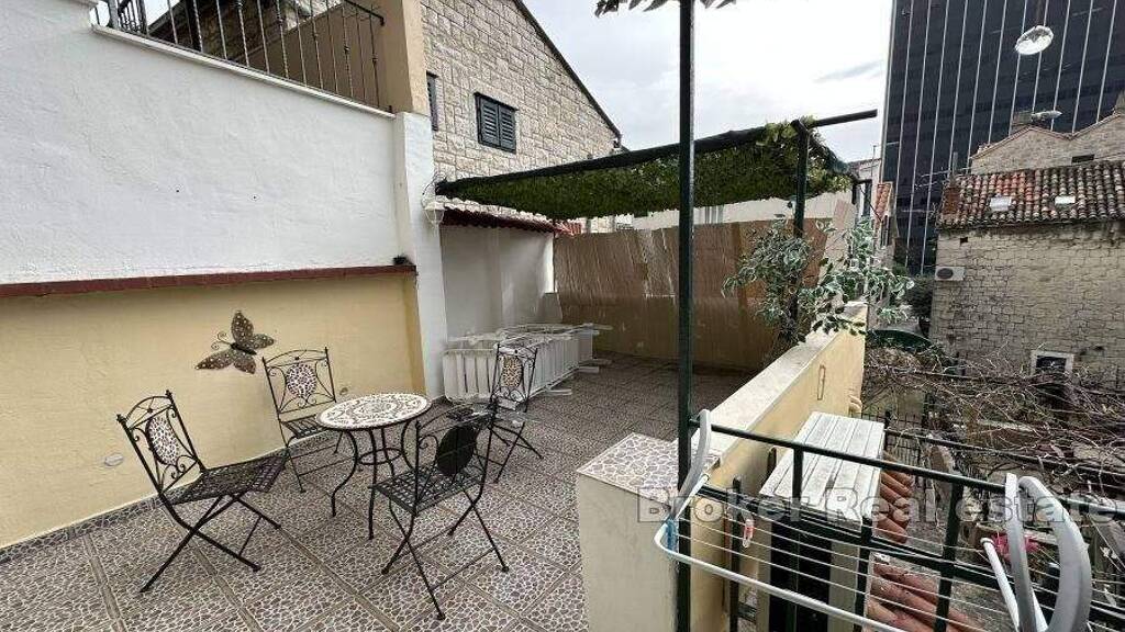 Der Vorteil dieser Immobilie besteht darin, dass die meisten Immobilien im Stadtzentrum keinen Innenhof und Garten haben, während diese Immobilie über ganze 3 separate Terrassen verfügt, zwei im Erdgeschoss, eine im ersten Stock mit Aussicht.