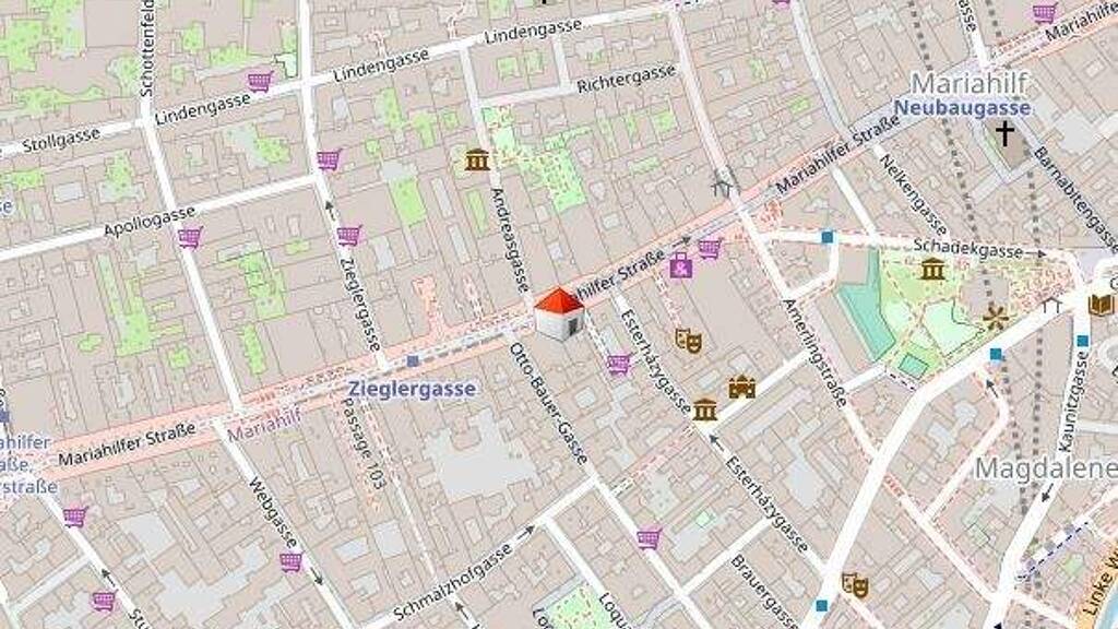 Die öffentliche Verkehrsanbindung ist hervorragend. In wenigen Gehminuten sind mehrere U-Bahn-Stationen (U3 Zieglergasse, U3 Neubaugasse sowie U6 Westbahnhof) erreichbar. Zusätzlich sorgen zahlreiche Straßenbahn- und Buslinien für eine optimale Anbindung in alle Teile der Stadt. Der nahegelegene Westbahnhof bietet darüber hinaus direkte nationale und internationale Bahnverbindungen.