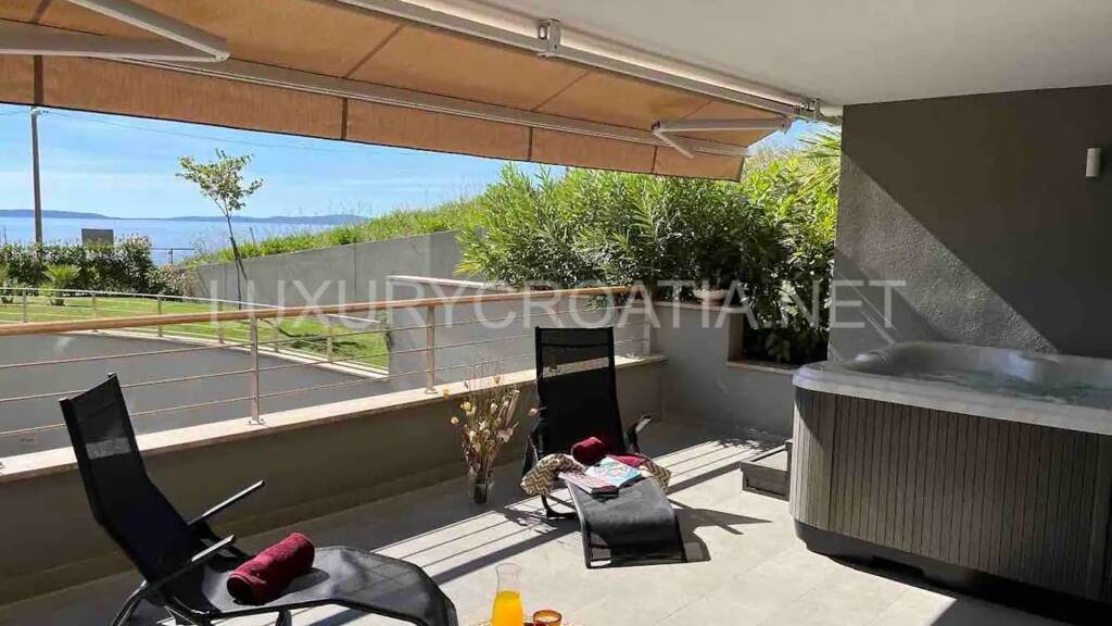 Dieses gemütliche Apartment zum Verkauf mit Meerblick, Garage und Whirlpool am Strand in Split, Kroatien, liegt nur wenige Gehminuten vom Strand entfernt.