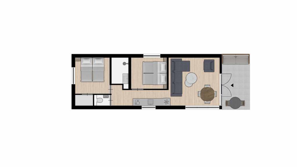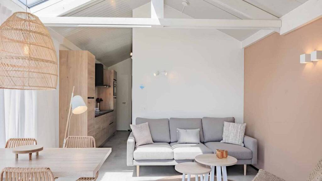 Dieses schlichte, komplett eingerichtete Ferienhaus bietet Platz für 4 Personen. Das Wohnzimmer ist sehr hell und clever eingerichtet. Große Glasfronten geben den Blick auf die überdachte Terrasse und die anschließende Aussicht frei. Innen und Außen sind hier wirklich gut miteinander verbunden. Das Oberlicht im Wohnzimmer sorgt nicht nur für viel Licht, sondern bietet auch einen Panoramablick auf den schönen niederländischen Himmel. Das Haus ist komplett gasfrei und hat ausgestattet.