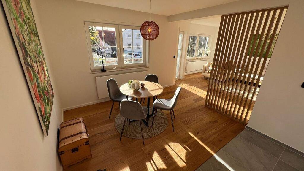 Die Wohnung wurde hochwertig saniert und überzeugt durch ein harmonisches Farb- und Materialkonzept. Der durchgehend verlegte Eichen-Echtholzboden in Kombination mit weißen dänischen Sockelleisten schafft eine warme und zeitlose Wohnatmosphäre. Glatte Wände mit Malervlies sowie neue Türen und Beschläge unterstreichen den hochwertigen Gesamteindruck.
