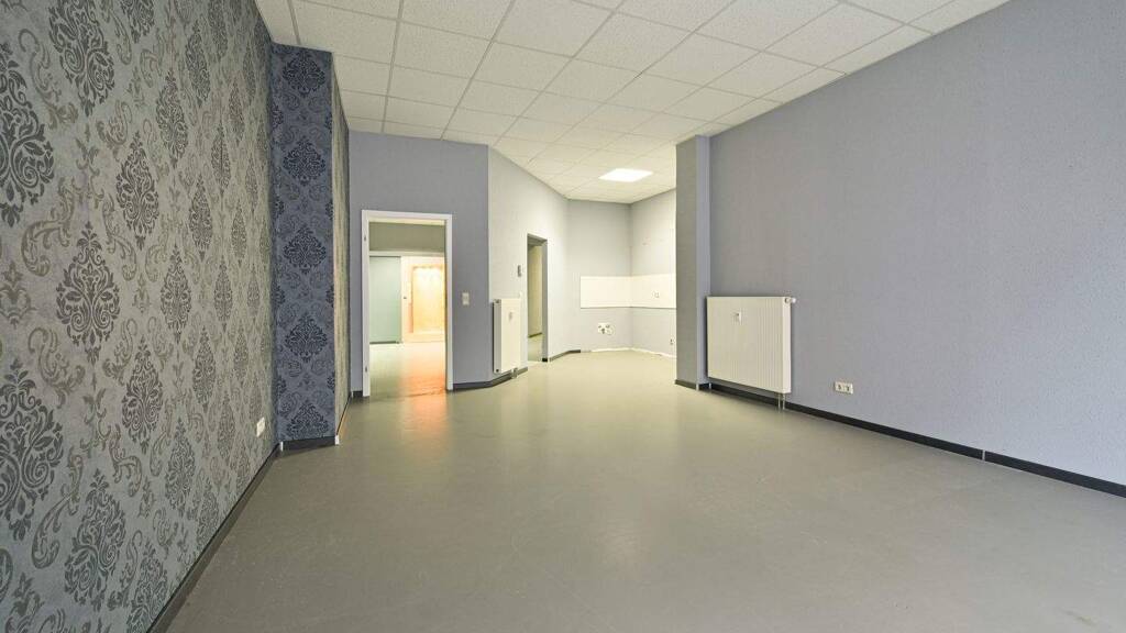 Die Gewerbefläche eignet sich hervorragend als Praxis- oder Büroeinheit. Neben einem großen Flurbereich stehen mehrere Räume zur Verfügung, die sich flexibel nutzen lassen. Eine separate Küche sowie eine zusätzliche Kochnische ergänzen das Raumangebot und bieten Komfort für Mitarbeiter. Ein separates Gäste-WC ist ebenfalls vorhanden, zudem sind in allen Räumen Wasseranschlüsse installiert, was den Standort besonders für Dienstleistungs- oder Praxisnutzungen prädestiniert.