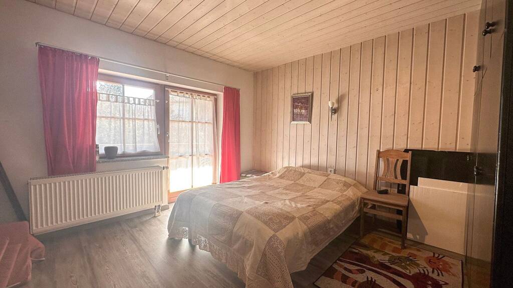 Im Erdgeschoss befinden sich zwei Zimmer sowie ein funktional ausgestattetes Badezimmer mit Badewanne, Dusche, WC und Waschbecken.