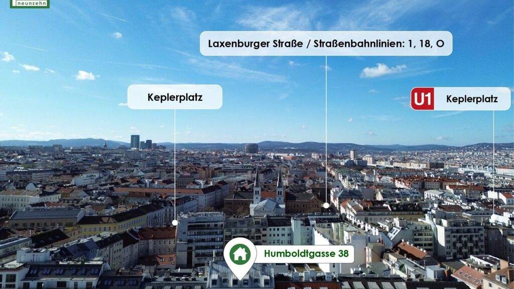 Die Lage überzeugt durch eine ausgezeichnete öffentliche Verkehrsanbindung: Straßenbahnlinien entlang der Laxenburger Straße, die Nähe zu den U-Bahn-Stationen Keplerplatz und Reumannplatz sowie diverse Busverbindungen ermöglichen eine schnelle und unkomplizierte Mobilität. Auch der Wiener Hauptbahnhof ist rasch erreichbar.