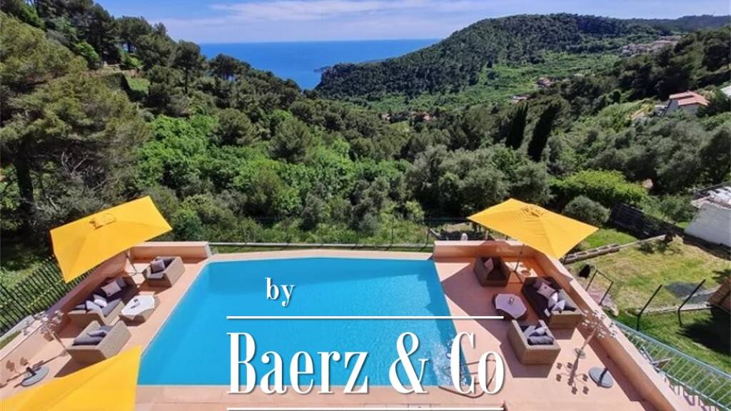 this majestic modern villa, offering quality finishes with spectacular sea views sits above the breathtaking mediterranean coast, approx. 15 minutes of monaco.the abundant outdoor space makes this home perfect for entertaining. whether you are relaxing by the pool or dining on the terrace.stairs and continuous from the main entrance to the entrance of the villa, no barrier.access from the garage to the entrance hall. all floors are serviced by lift, access to all rooms. an absolutely remarkable terrace of more than 140m2 2 additional terraces by the pool, one of approx. 20m2 the other approx. 26m2 romantic pavilion with lounge area of ??approx. 20m2. garages for 2-3 cars, workplace / studio (air conditioned / heated) about. 50m2 garage for 1 car integrated into the house parking space for visitors inside and outside the property southern exposure, approx. living space approx. 300 m² closed secondary rooms partially equipped with air conditioning and heating. lot of land approx. 3000 m2 composed of: entrance and entrance hall 3 bedrooms / former 4 bedrooms) 2 bathrooms + 1 equipped toilet (pre-installation for shower) possibility to create a total of 5 bedrooms living area with fireplace approx. 60m2