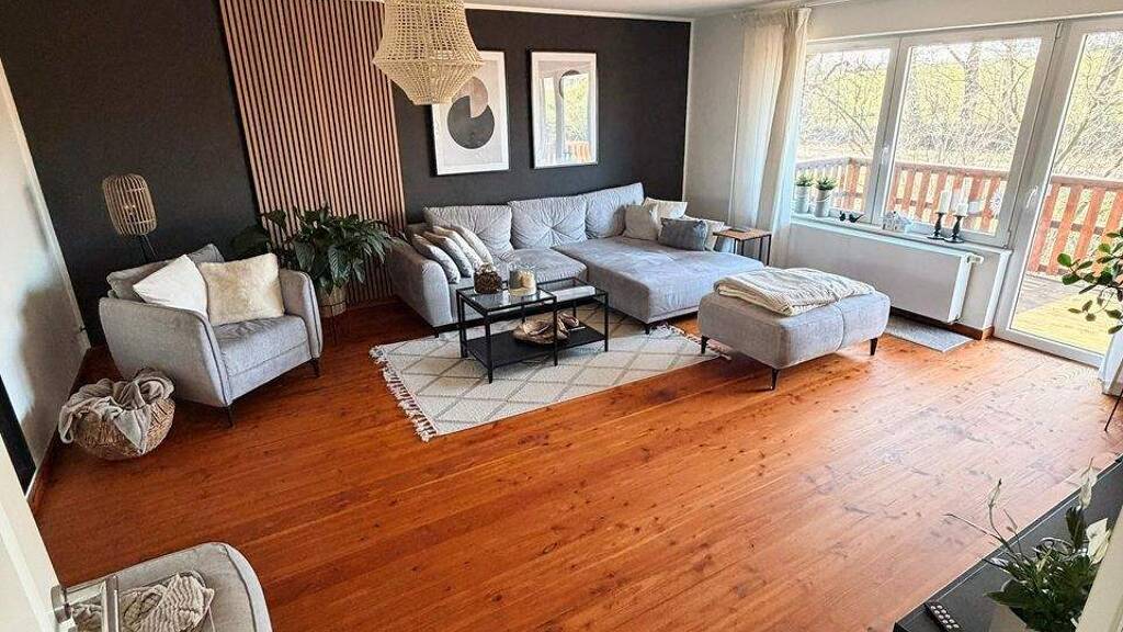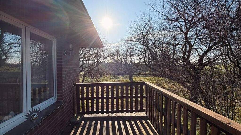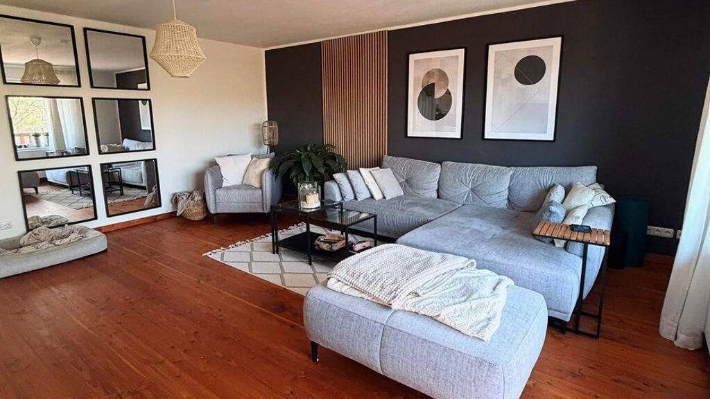 Diese schöne Wohnung mit einer Wohnfläche von ca. 150 m² befindet sich im Obergeschoss eines ehemaligen bäuerlichen Gehöfts und wurde im Jahre 2012 komplett kernsaniert. Vom Eingangsbereich gelangt man direkt in eine große Diele, die mit einem schönen Kamin ausgestattet ist. In diesen Bereich wurde die offene Küche integriert, was für ein besonderes Ambiente sorgt und das Zentrum der Wohnung bildet. Darüber hinaus verfügt das Objekt über zwei Schlafzimmer sowie ein großzügiges Wohnzimmer, von dem man auf den Balkon gelangt. Wie die komplette Wohnung ist auch das schöne Badezimmer sehr hell und geschmackvoll gestaltet worden. Es ist mit einer ebenerdigen Dusche und einer Badewanne ausgestattet und das WC ist getrennt vom Bad in einem separaten Raum untergebracht. Des Weiteren verfügt die Wohnung über einen Hauswirtschaftsraum und einen separaten Abstellraum, so dass ausreichend Stau- und Abstellmöglichkeiten bestehen.