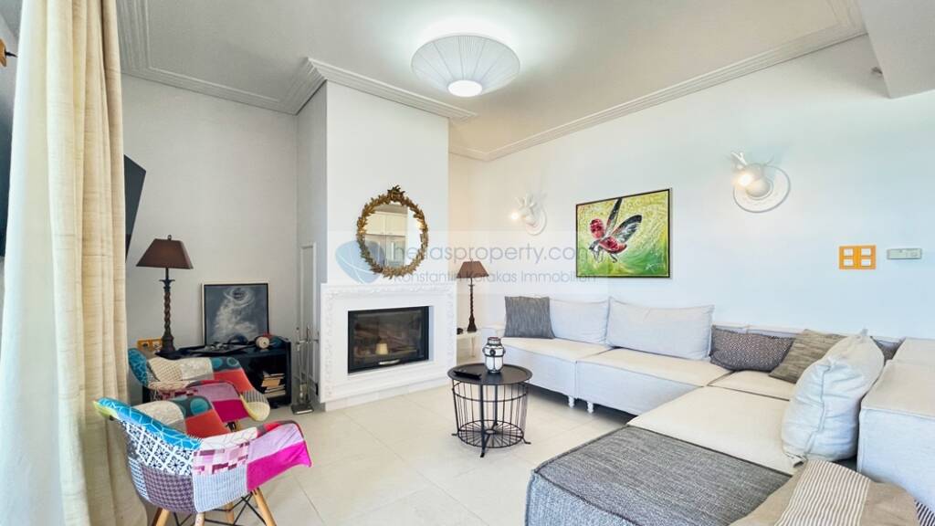 Die Wohnung befindet sich im 1. Stock und erstreckt sich über eine Fläche von 130 qm. Sobald Sie eintreten, werden Sie von einem einzigen und hellen Küchen- und Wohnbereich begrüßt, der mit einem gemütlichen Kamin für entspannte Abende und einem großen Balkon ausgestattet ist, der einen freien Blick auf den blauen Golf von Korinth bietet. Es verfügt außerdem über zwei große Hauptschlafzimmer, jedes mit eigenem Bad, was den Bewohnern absolute Privatsphäre und Komfort gewährleistet.
